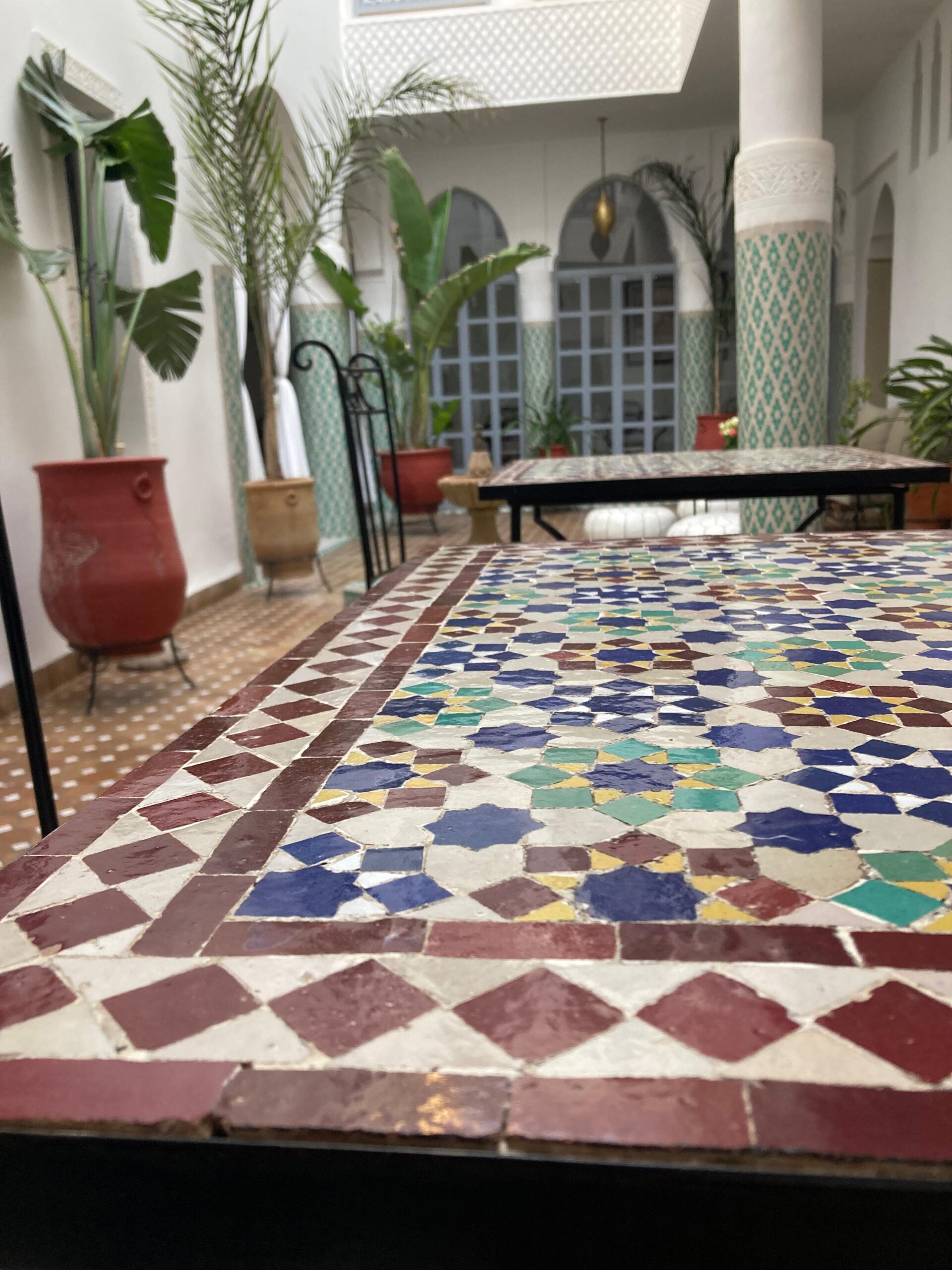 Tiles: Glazed ceramic (zellige), hand-cut