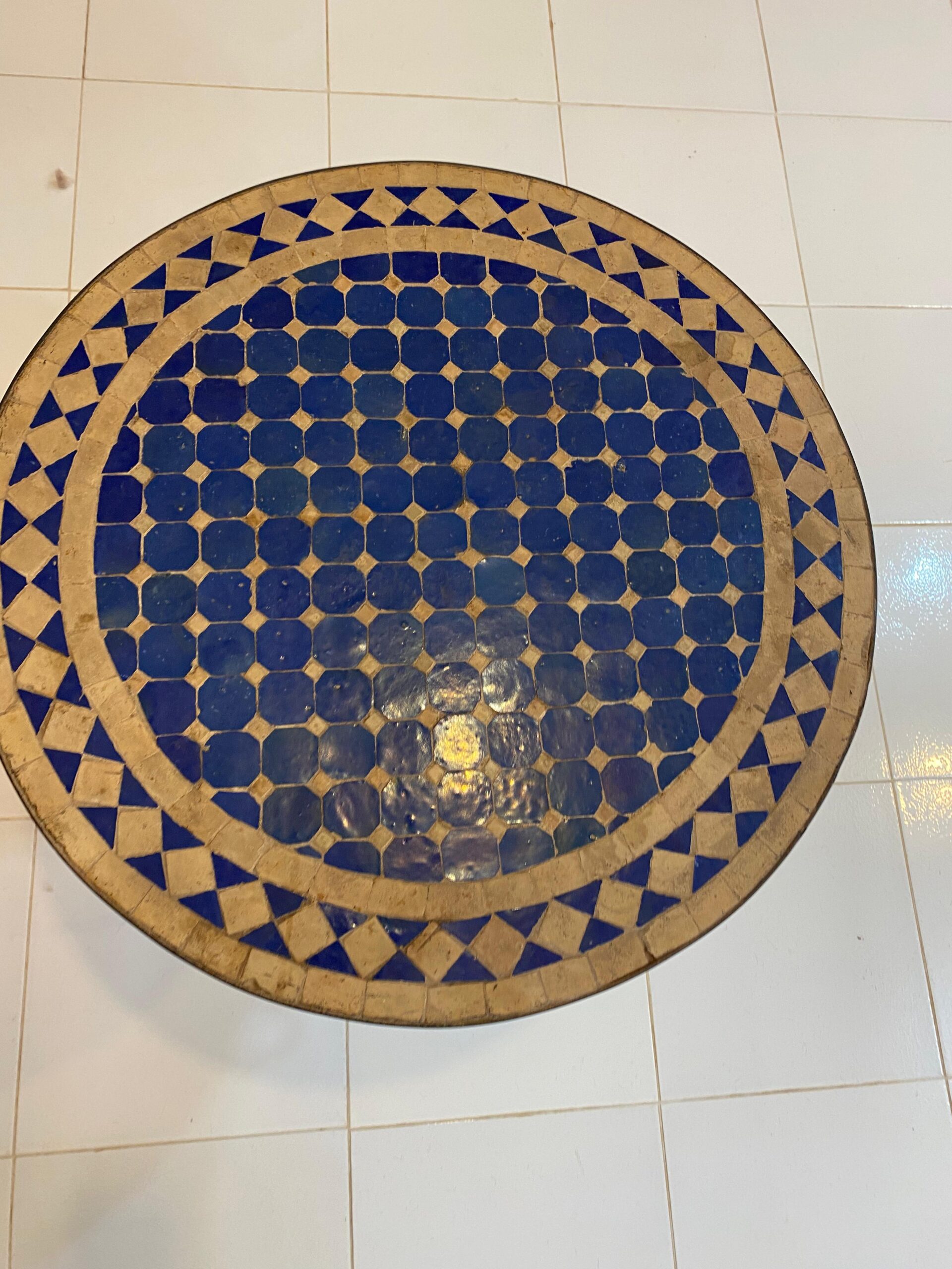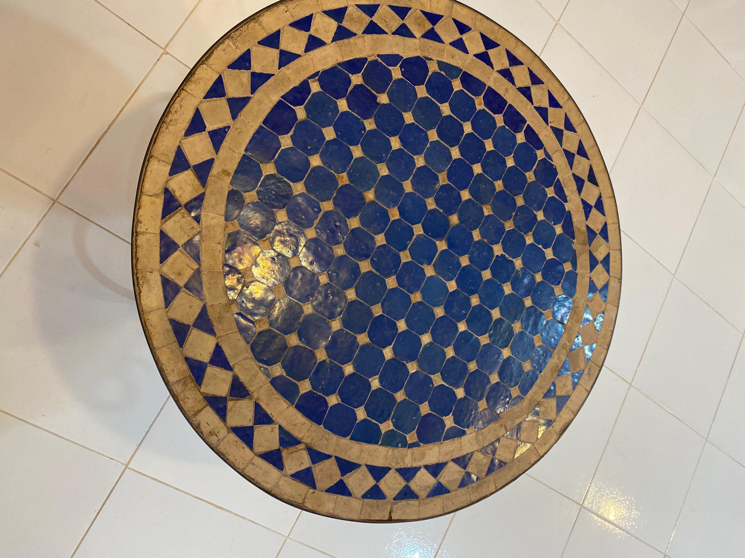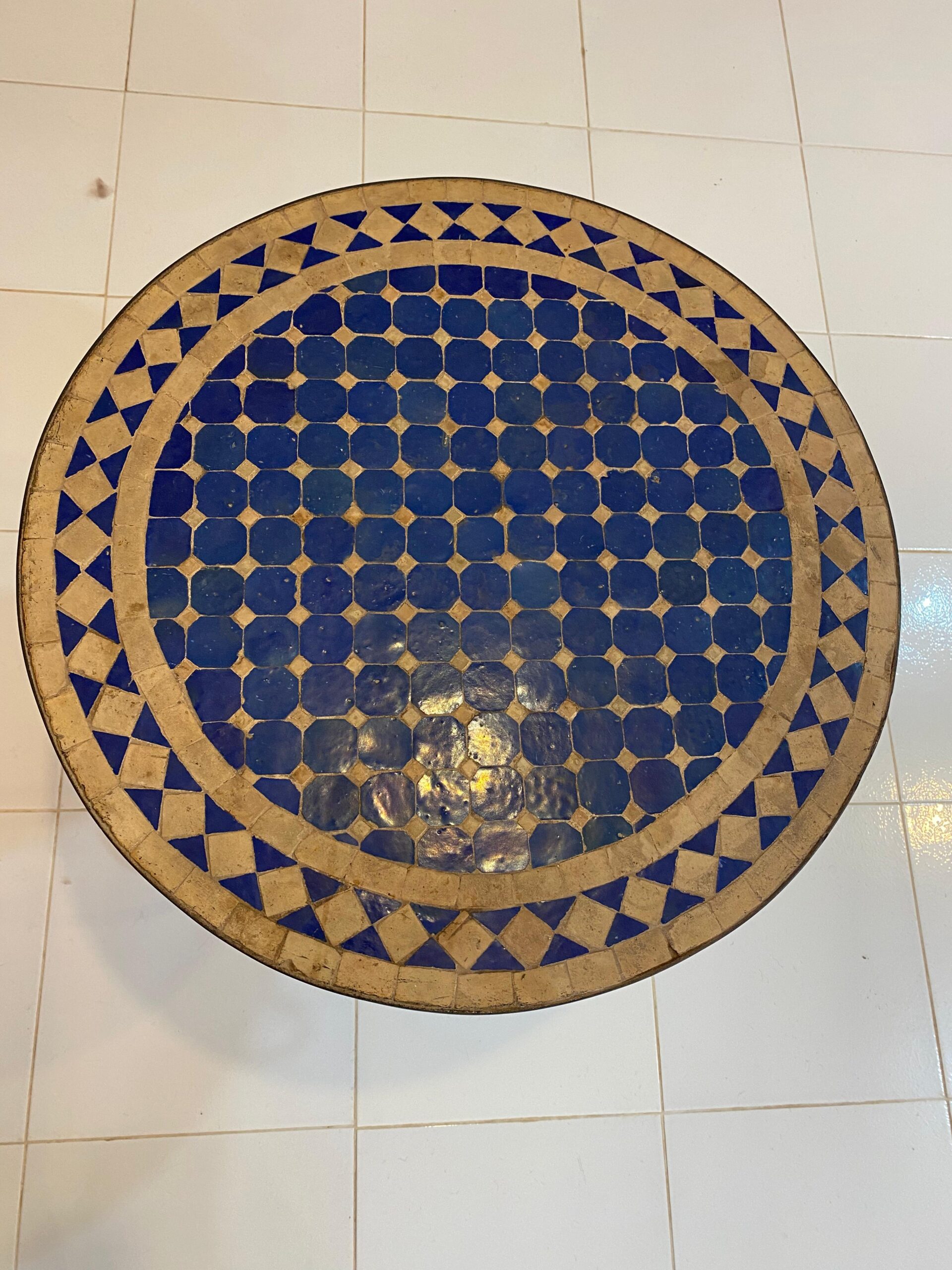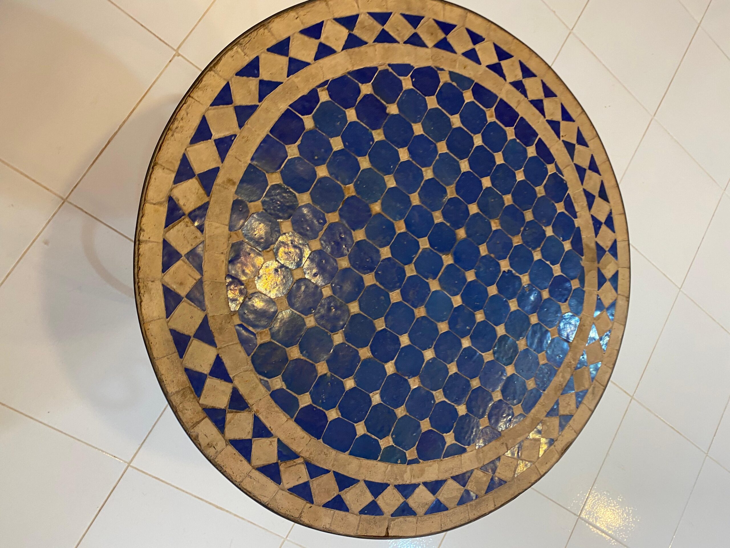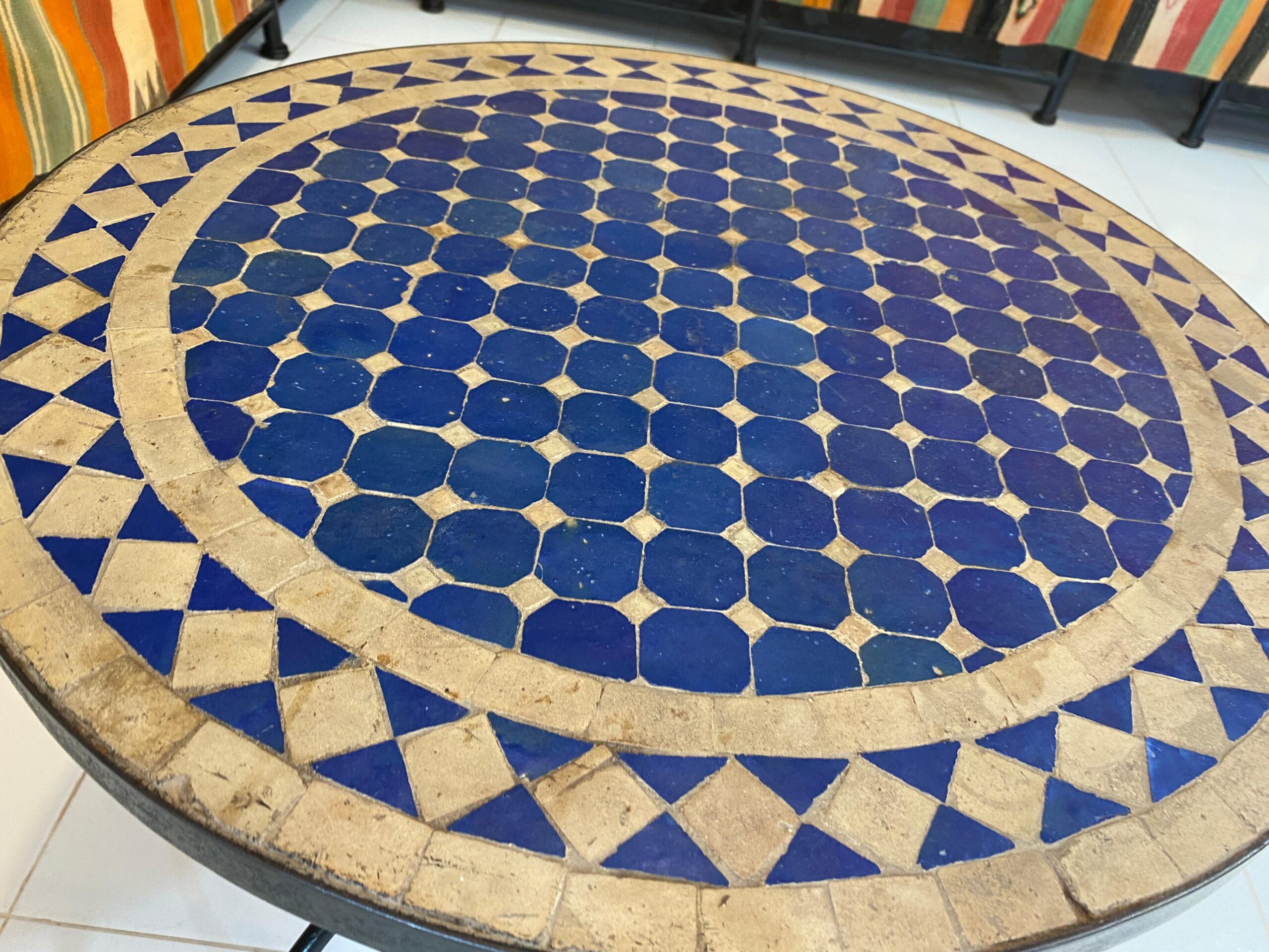 Bring authentic Moroccan craftsmanship to your space with this stunning handmade zellige mosaic table, featuring rich royal blue tiles set in traditional geometric patterns. Whether placed in a patio, living room, riad, or cafe, this table is a masterpiece of timeless elegance and cultural heritage.