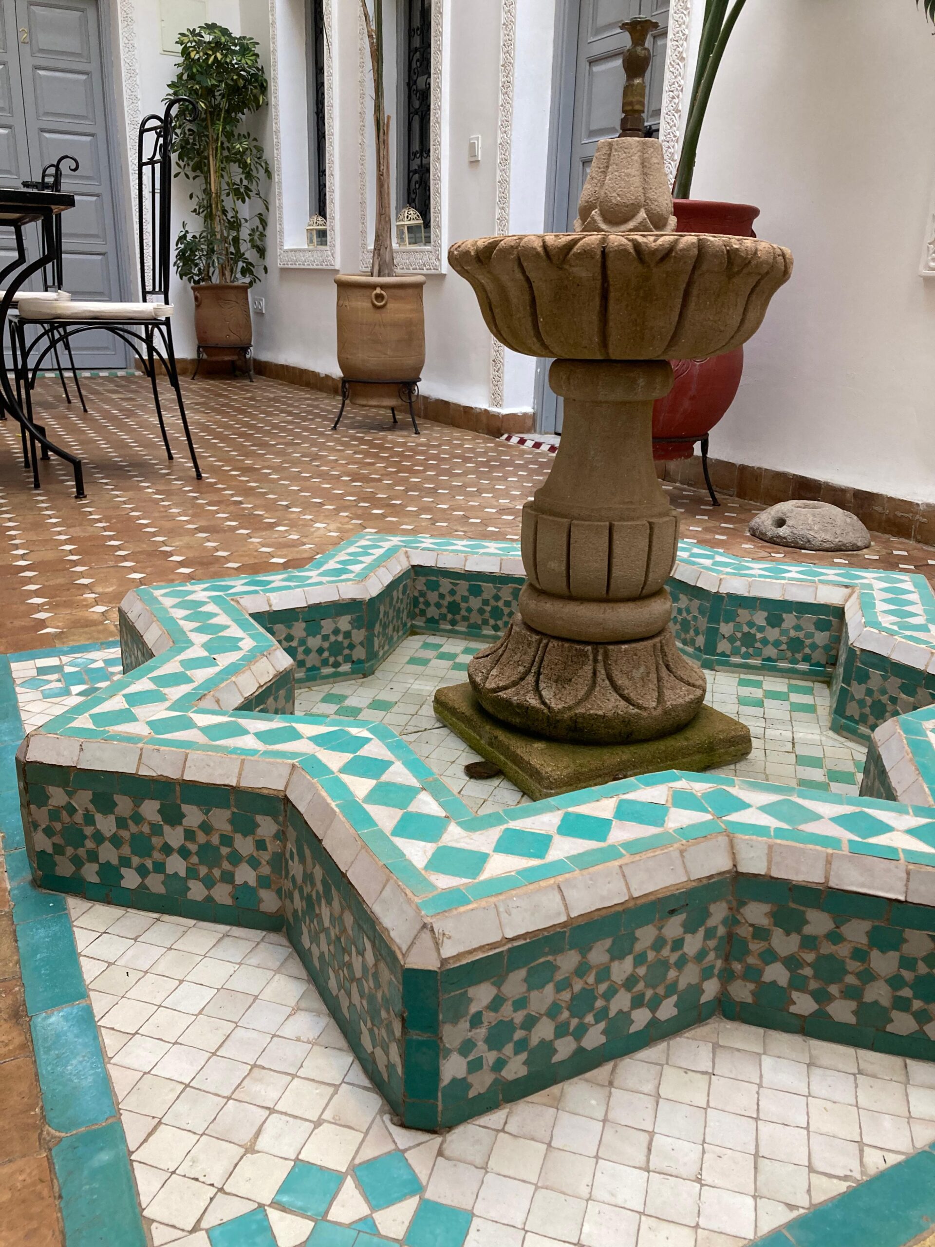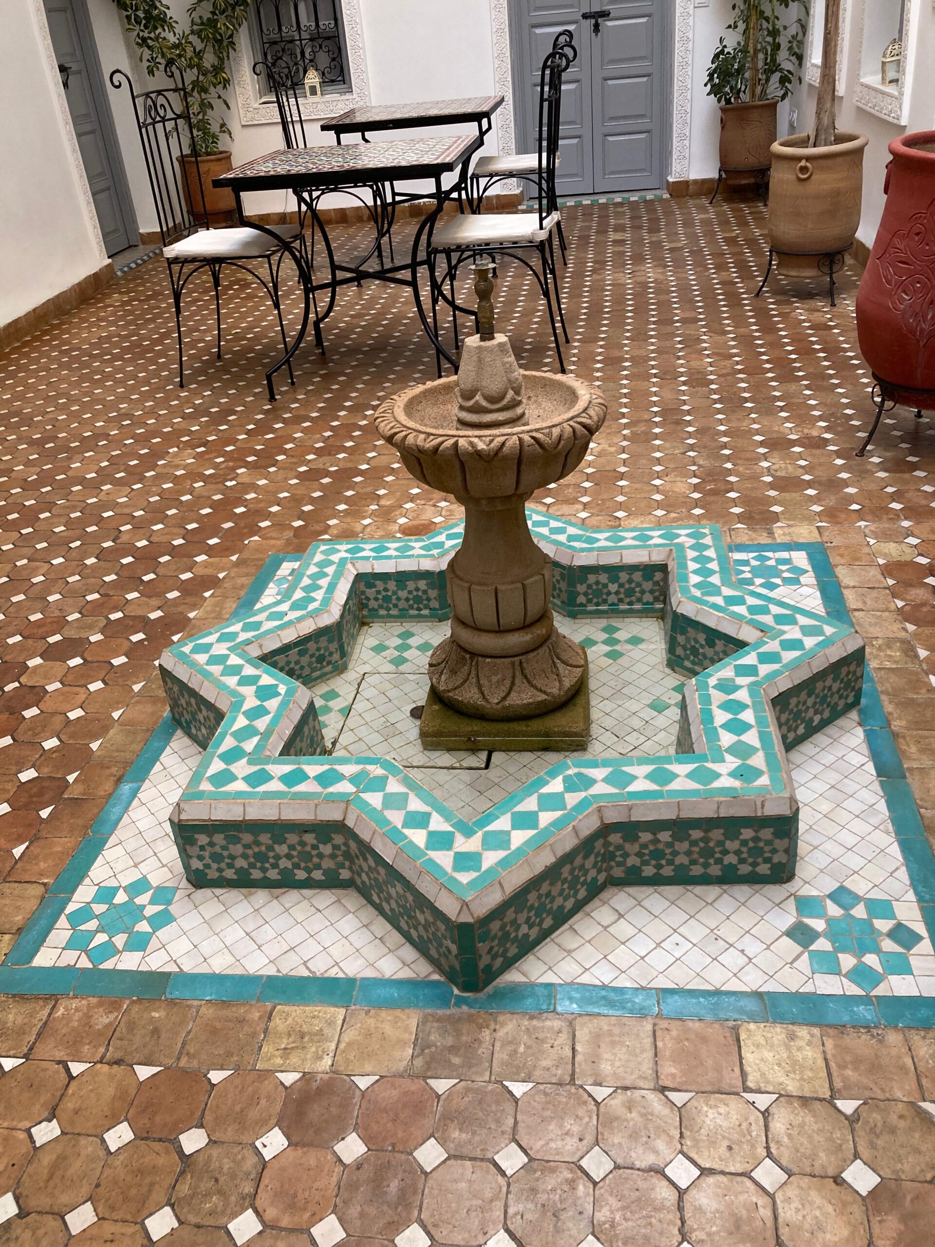 This piece blends Andalusian and Amazigh artistic influences, with the eight-point star — symbol of balance and harmony — surrounded by symmetrical motifs inspired by Moroccan palaces and madrasas. It’s made entirely by hand, using centuries-old zellige techniques, where each tile is individually cut and placed by master artisans in Fez.